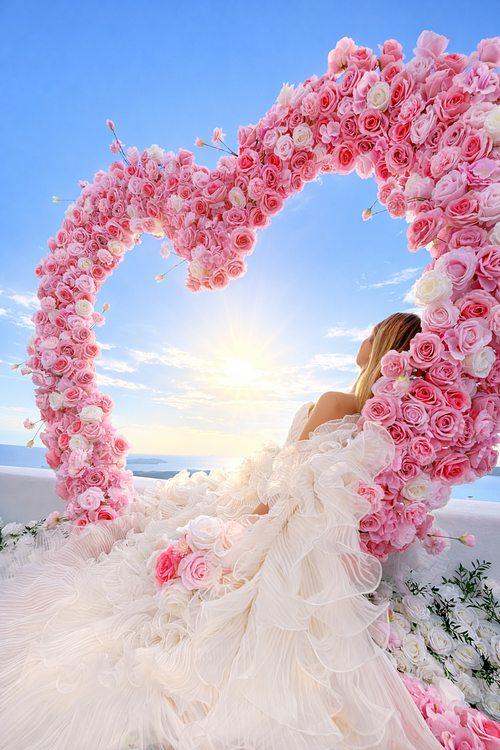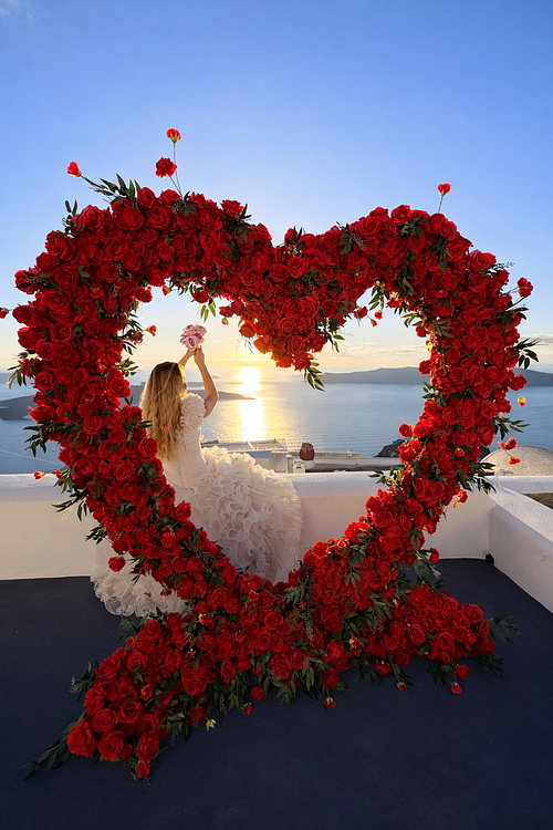 Signature Heart Decor is an exclusive luxury setup available only at our Santorini villas.