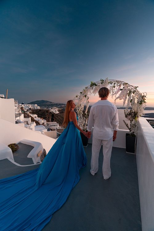 We create intimate wedding ceremonies, proposals, and private moments in Santorini.