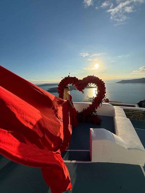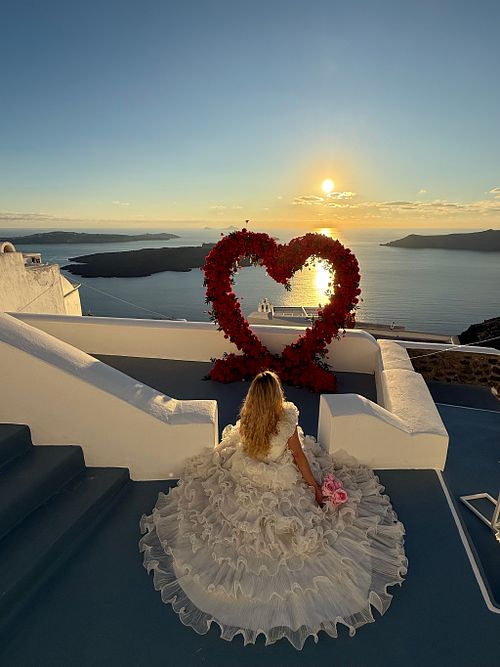 Book your villa and heart decor directly with us to receive a special package rate for proposals, weddings, photoshoots and private celebrations with a breathtaking Caldera view.